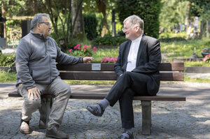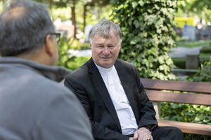 Bischof Manfred Scheuer und Clemens Frauscher vom St. Barbara Friedhof im Gespräch über Abschiede und Erinnerung an Verstorbene.