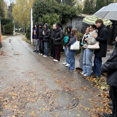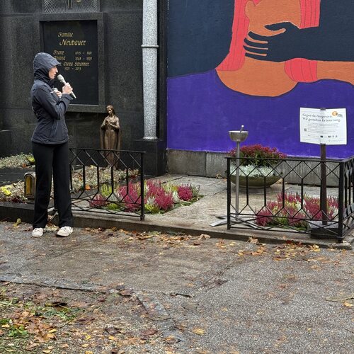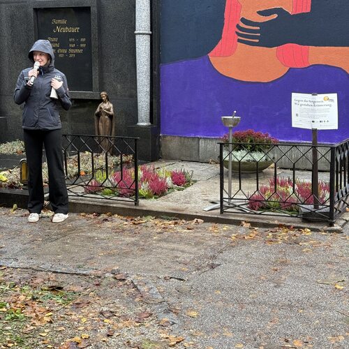 Im Rahmen der größten Jugendsozialaktion Österreichs „72 Stunden ohne Kompromiss“ gestalten Schüler:innen der 8MED-Klasse des BRG Linz Hamerlingstraße von 22. bis 25. Oktober 2025 auf dem St. Barbara Friedhof Orte der Erinnerung. Dafür stellte der St. Barbara Friedhof derzeit ungenutzte Wandgräber zur Verfügung. Es entstanden Orte des Gedenkens für vier Gruppen: Opfer von Femiziden, Suizidopfer, Flüchtlinge auf der Balkanroute und Opfer von Zwangsarbeit im 2. Weltkrieg.