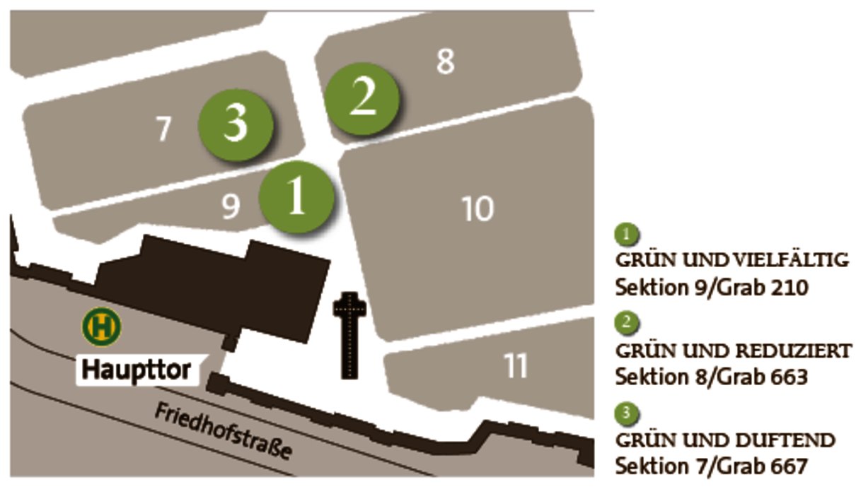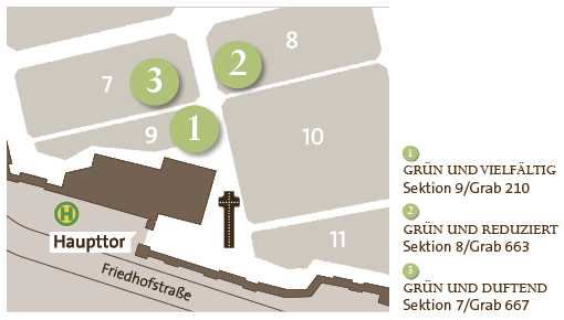 Bei der Umsetzung dieser Grabbepflanzungen unterstützen Sie die Gärtnereifachbetriebe, die am St. Barbara Friedhof tätig sind. Dort erhalten Sie auch alle genannten Pflanzen.