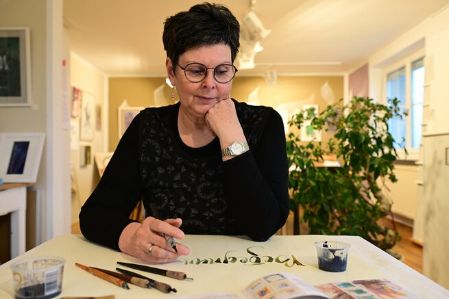 Kalligrafie-Workshop für Trauernde mit Andrea Felber und Andrea Mayer-Edoloeyi.