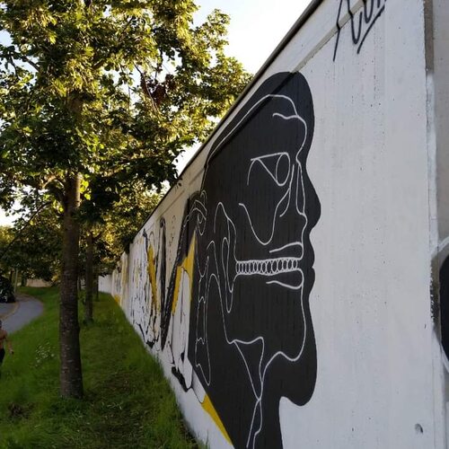 Schon in der Woche vor dem Memento-Tag verwandelte sich die Friedhofsmauer an der Lastenstraße in ein Kunstwerk. Die Graffiti-Künstler*innen canlab, katuuschka, ruin, video.sckre gestalteten die Wand in gelb, schwarz und weiß - in ihrem geweiligen unverwechselbaren Stil.
