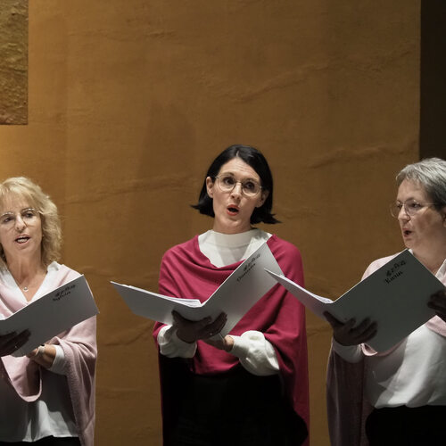 Acht phantastische Frauenstimmen, getragen von Gitarre, Flöte, Querflöte und natürlich Klavier, sangen über das Leben und dessen Ende. Der Esprit und das Herzblut der “Gernsinger” war spürbar. Die Musikblöcke waren verbunden durch sehr tiefgehende und teils sehr persönliche Texte.